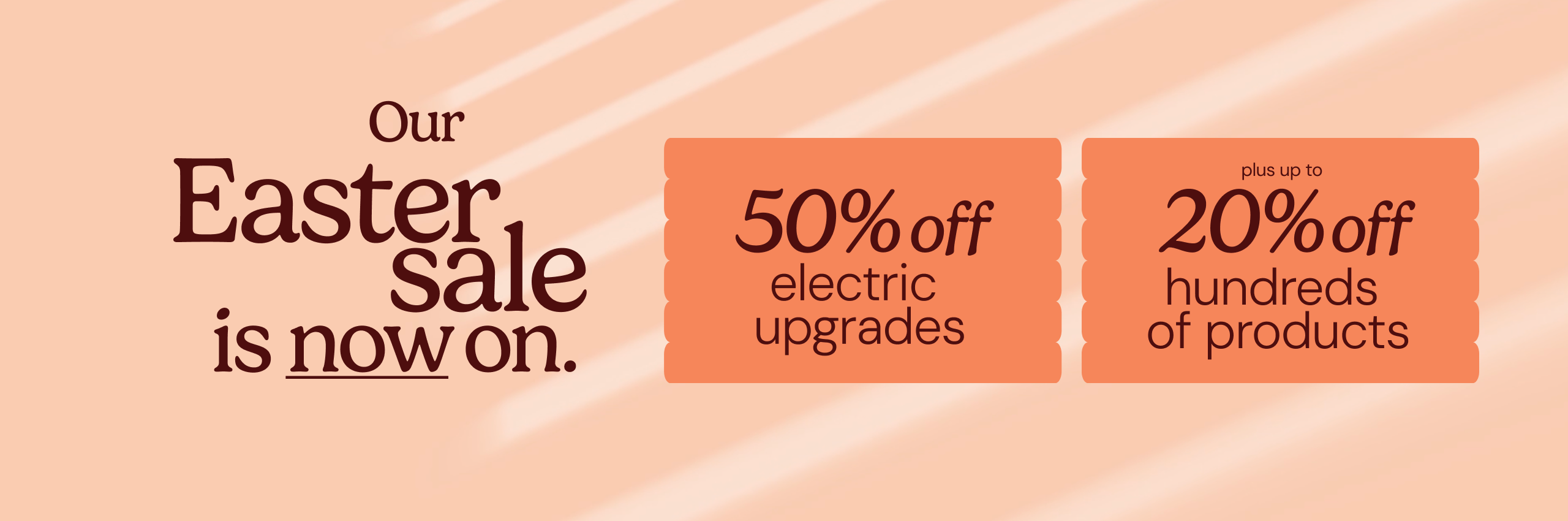 Great news: our Easter sale is here. Make the most of the longer days with blinds and curtains that help you enjoy the light in your home. With savings on classic Roman blinds, roller blinds and curtains, as well as half price electric upgrades, it's the perfect time for a spring refresh.